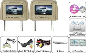 New Tan Color Pair of Headrest 7" LCD Car Monitors with Region Free DVD player USB SD and 32 Bit Games Wireless Game Controllers and Wireless Remotes Review